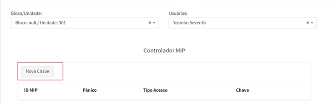 ⚠️ Atenção: O campo Chave deve conter exatamente 8 caracteres para o cadastro de chave no MIP
