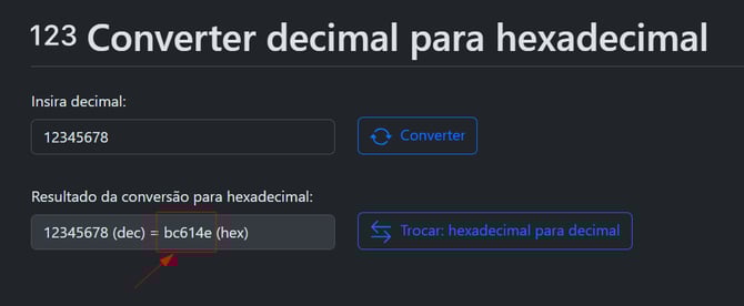 Converta o valor da chave de decimal para hexadecimal, conforme o padrão exigido pelo sistema.