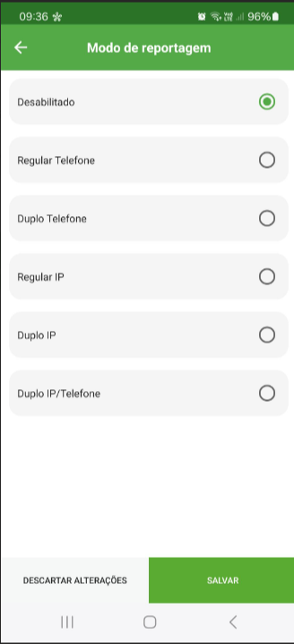 Config. Central → Comunicação → Modo Reportagem