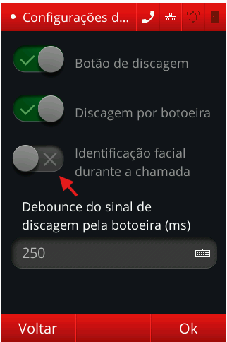 A opção Identificação facial durante a chamada está desativada nas configurações do próprio idFace.