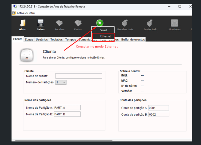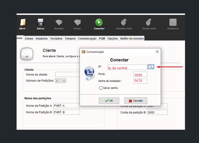 Instale o software no computador que realizará a configuração da central. https://jflalarmes.com.br/softwares-drivers/