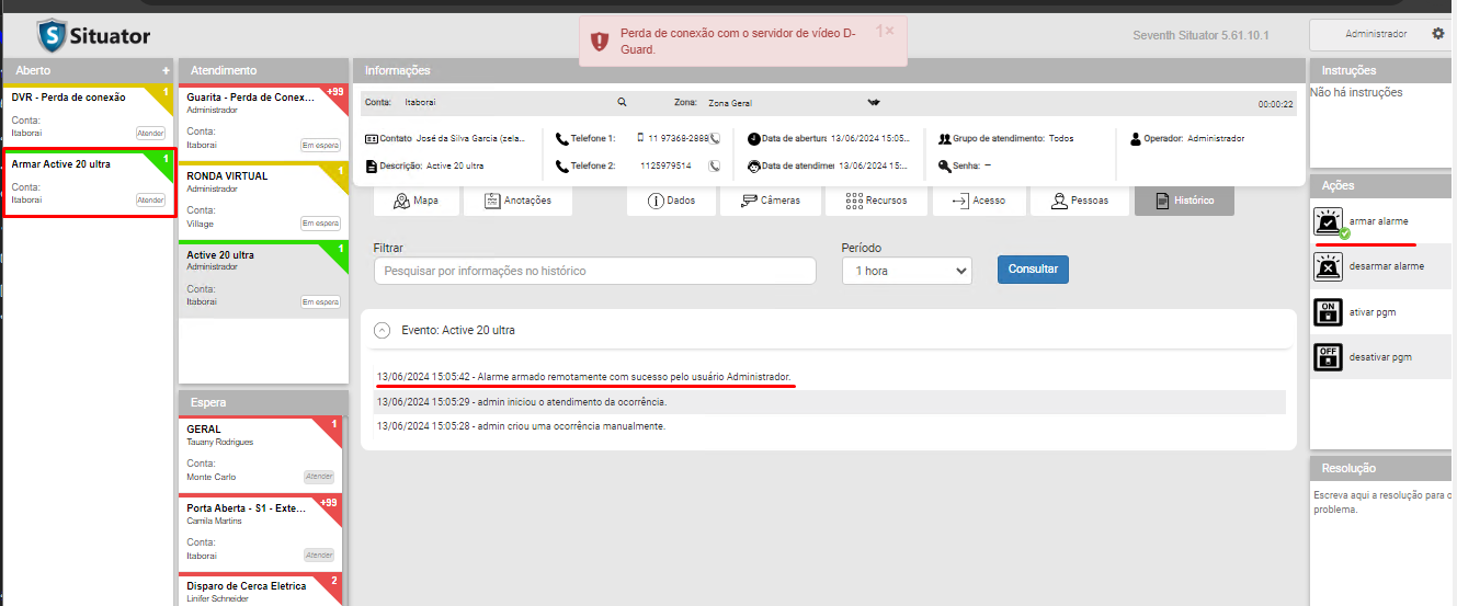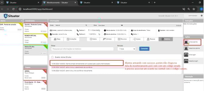 Após esse mapeamento, o evento passará a aparecer corretamente na tela de monitoramento do Situator.