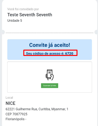 Visualize o código de acesso exibido na tela e salve essa informação, pois ela será necessária após a leitura do QR Code.