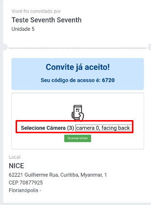 Escolha qual câmera será utilizada para realizar a leitura do QR Code.