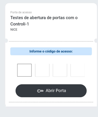 Digite o código de acesso salvo anteriormente no campo exibido na tela e clique na opção de abrir porta