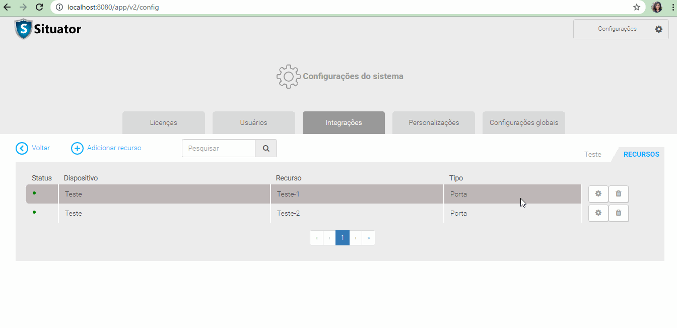 A porta configurada poderá ser utilizada em ações do Situator;