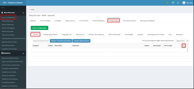 Cadastrar uma câmera no sistema Condomínio Autônomo / Portaria na Nuvem para permitir a visualização das imagens pelo sistema e, quando habilitado, pelo aplicativo.