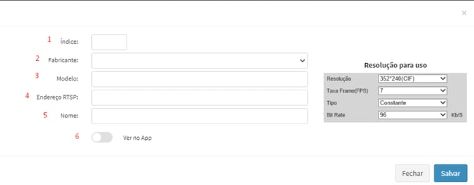 Após preencher todos os campos, salve o cadastro da câmera.