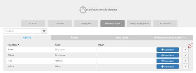 Ao alterar o som de uma prioridade, todas as ocorrências que utilizarem essa prioridade passarão a emitir o som configurado.
