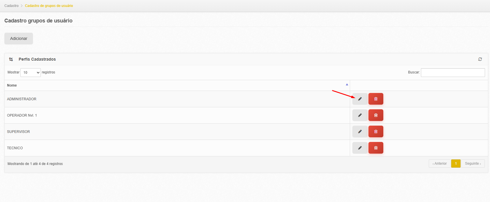 -Localize o grupo de usuário desejado (ex: Administrador) e clique para editá-lo.