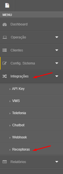 - Vá na aba Integrações > Receptoras.
