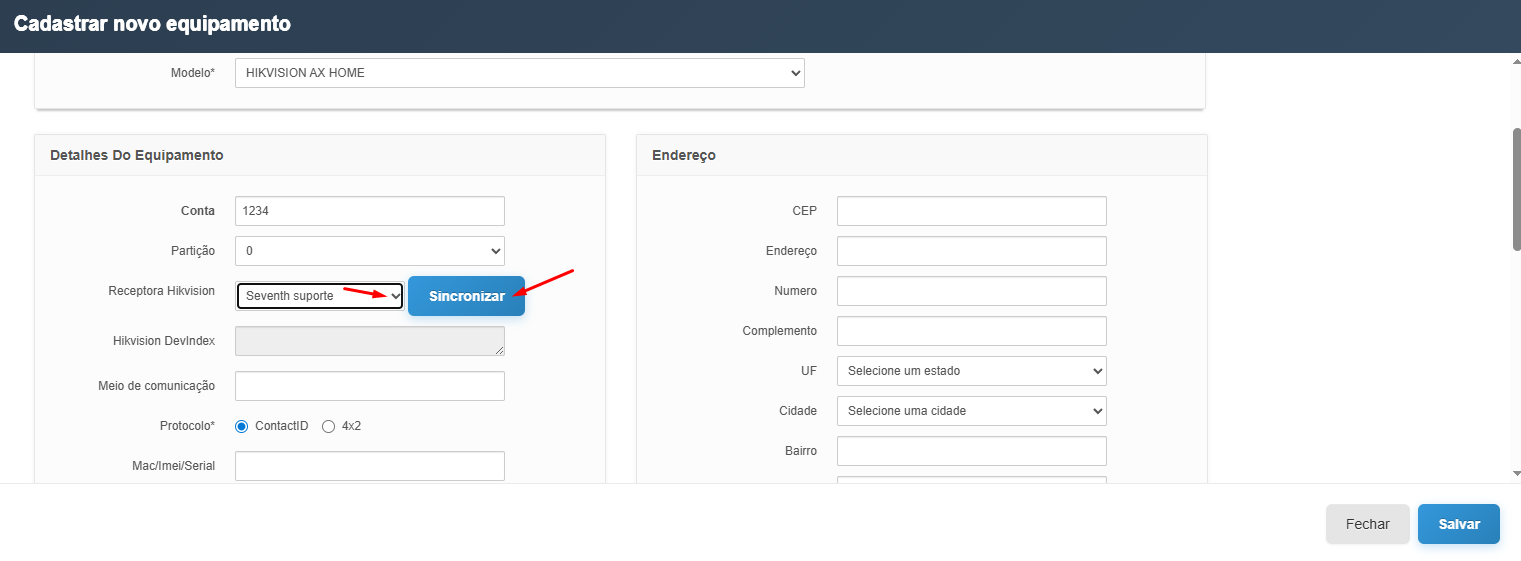 4- Sincronizar conta da central Hikvision com o sistema