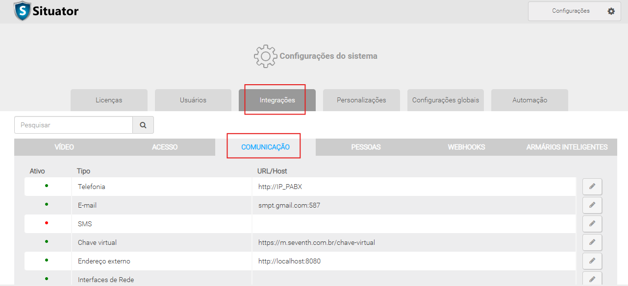 Configurar o servidor de e-mail no Situator para permitir o envio de mensagens a partir do sistema.