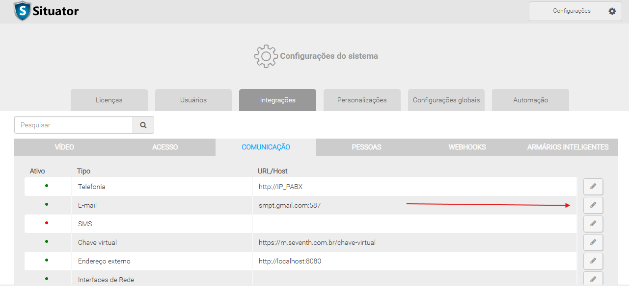 Como configurar envio de e-mail no Situator?