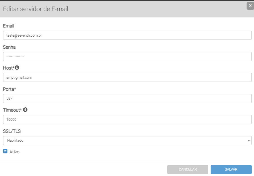 • Porta de comunicação do servidor de e-mail