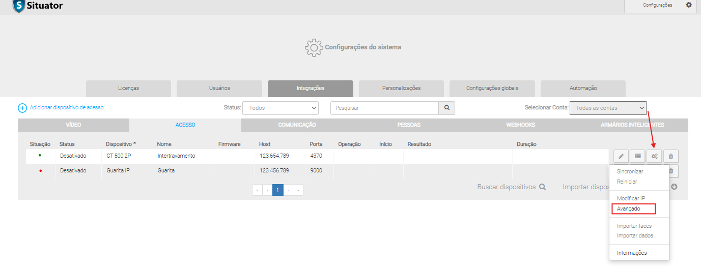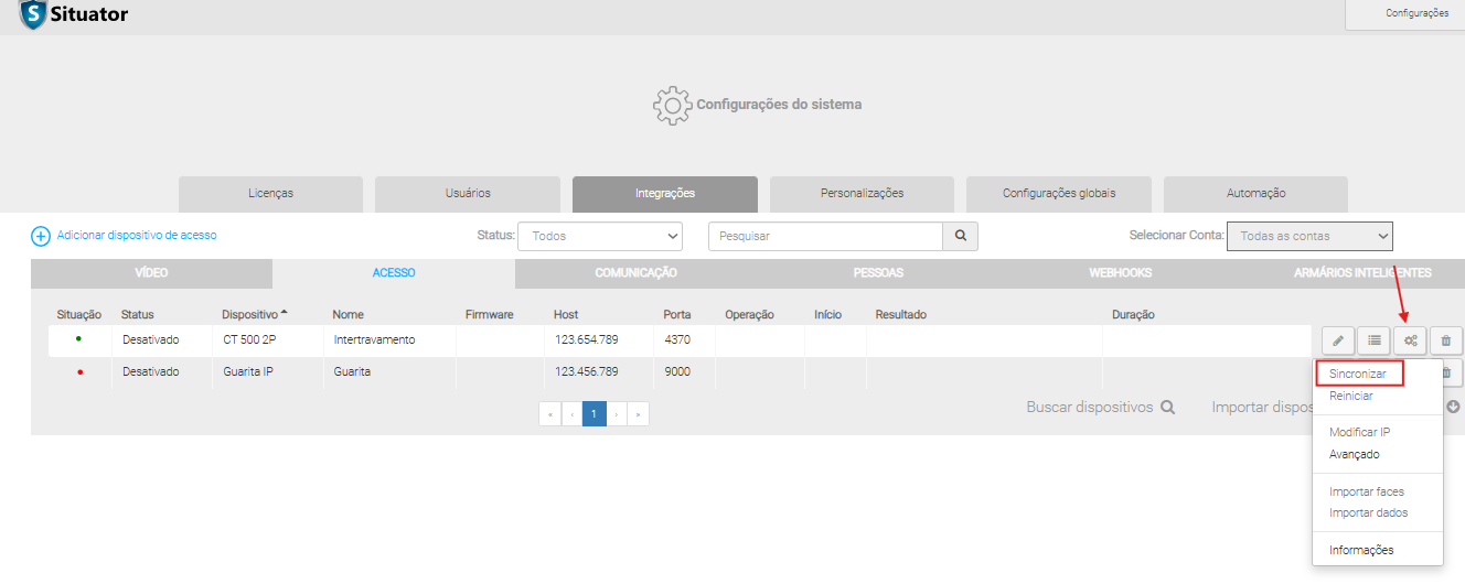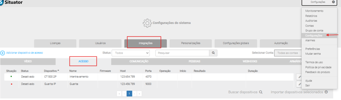 Controladora devidamente integrada ao sistema Situator