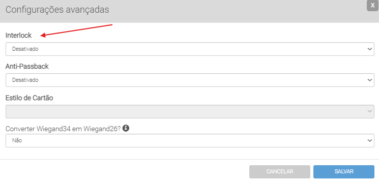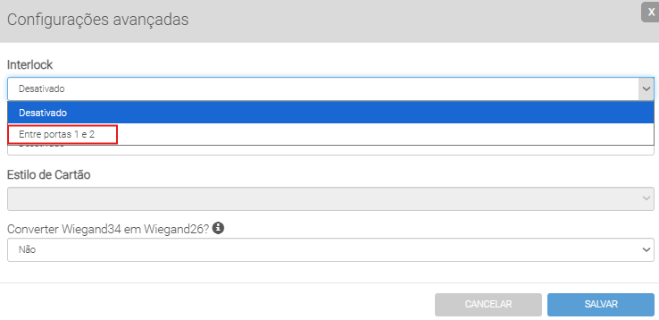 Observação: O funcionamento do Interlock depende obrigatoriamente dos sensores de porta estarem conectados e operando corretamente no sistema.