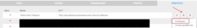 No Webhook criado, clique na engrenagem (Avançado).