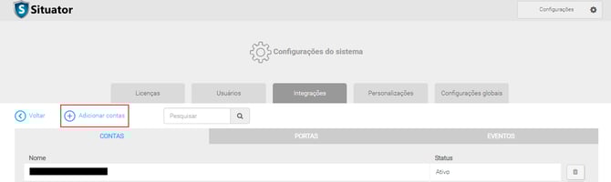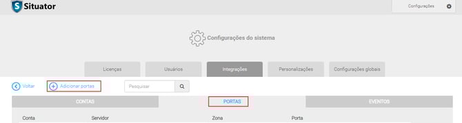 Conta e portas previamente cadastradas no Situator.