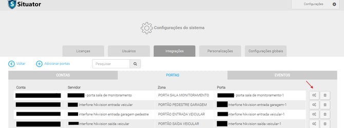 Após adicionar as portas, clique na engrenagem da porta configurada.