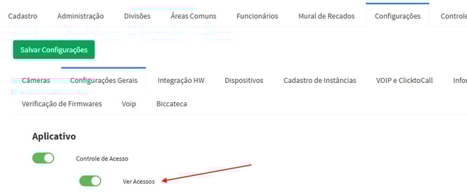 Habilite a opção correspondente ao recebimento de notificações de acesso.