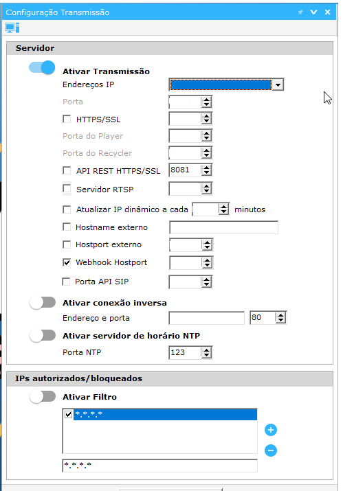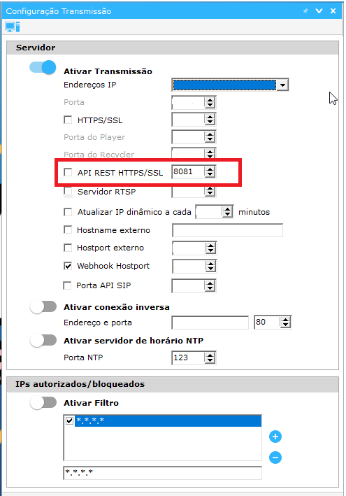 - Porta do Servidor: Porta API Rest