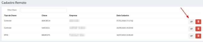 ℹ️ Após o cadastro, a chave ficará disponível para associação no sistema.