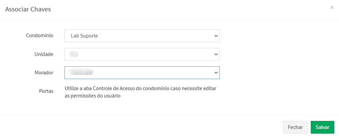 ℹ️ O acesso do usuário depende das portas selecionadas no momento da associação.