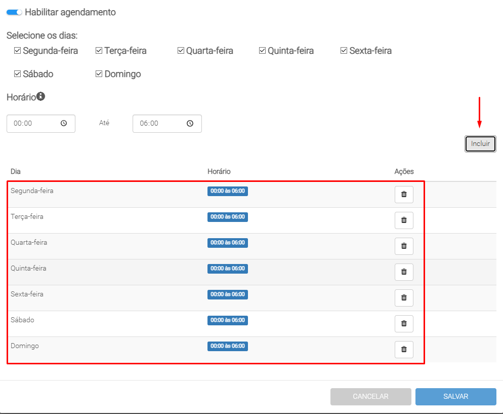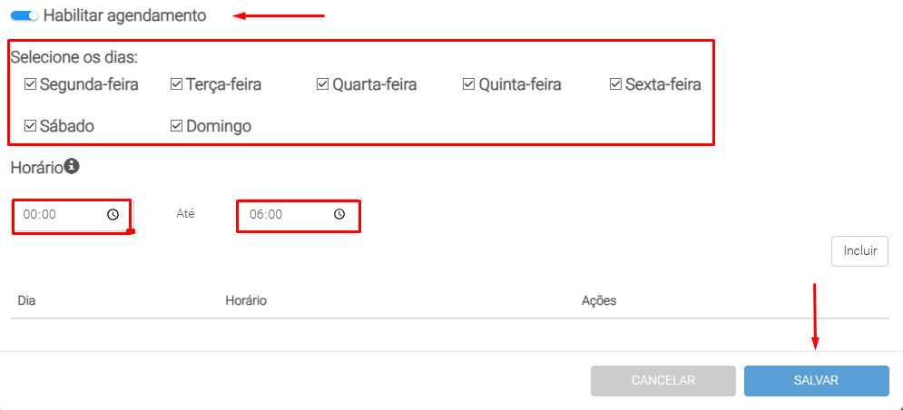 Configure o campo Habilitar agendamento para ativar a aplicação da regra.