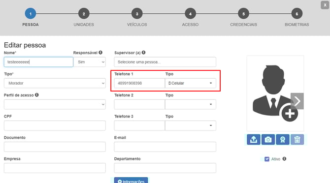 As informações de telefone e tipo são consultadas diretamente do cadastro da pessoa.