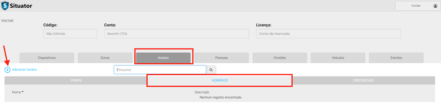 O Horário de Acesso funciona como um limitador de horário para Zonas e Pessoas.