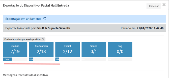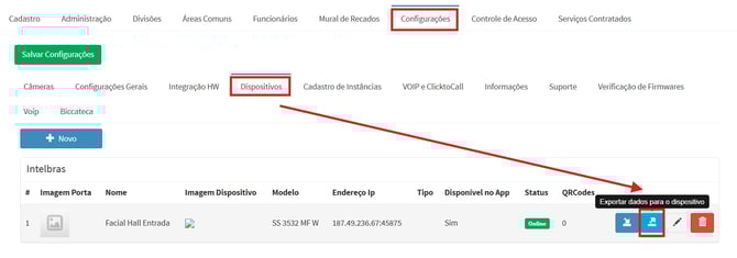 3. Na tela de “Dispositivos” clique no botão "Exportar dados para o dispositivo”;