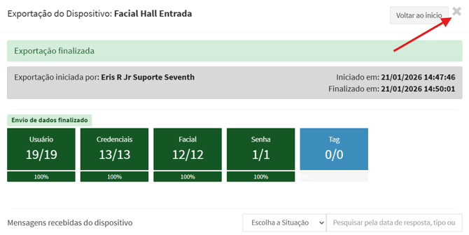 Ao concluir o processo, pode fechar a janela clicando no "X" no canto superior direito.