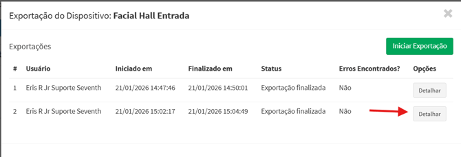 Em condomínios com muitos dados o processo pode demorar, nesses casos pode-se fechar a janela e verificar posteriormente o resultado, bastando para isso, clicar novamente no ícone da exportação e depois no botão "detalhar" da exportação desejada.