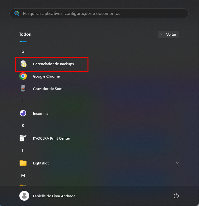 Acessar o Gerenciador de Backups