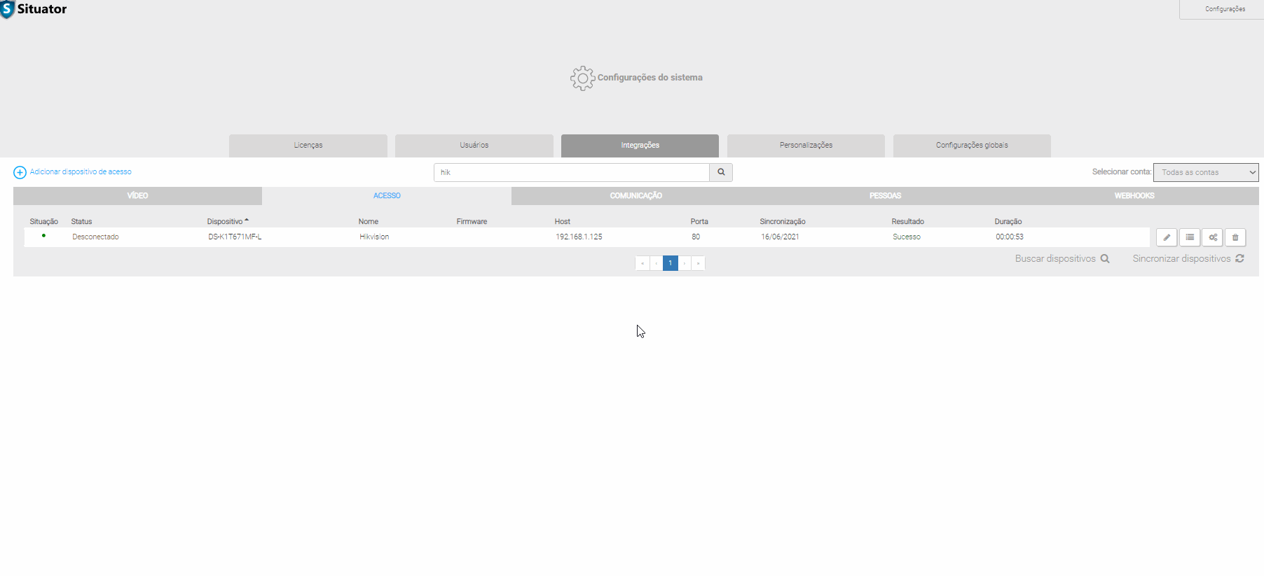 A controladora aparecerá na tela de monitoramento