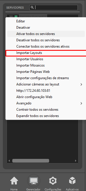 Orientar a importação dos Layouts de um Servidor D-Guard para uma Estação de Monitoramento conectada.