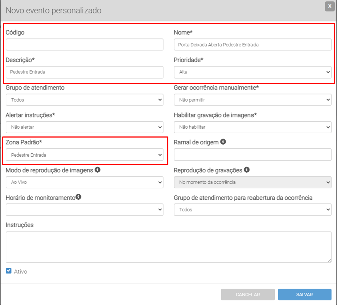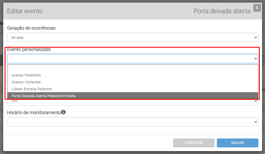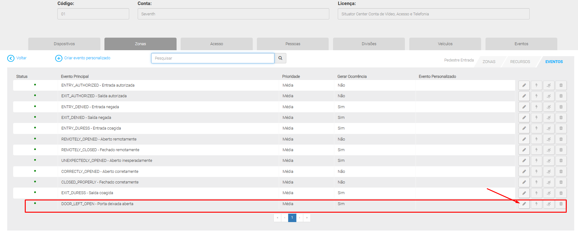 Configure um evento personalizado e vincule-o a um evento do dispositivo no Situator para adequar o comportamento dos eventos.