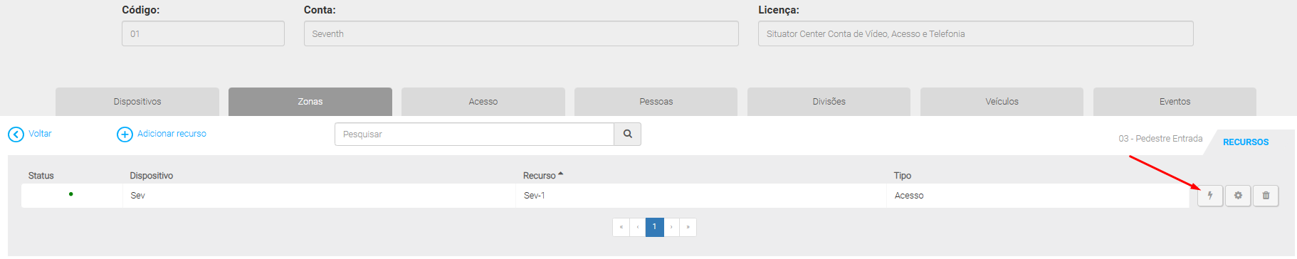 - Acesse a aba Zonas.