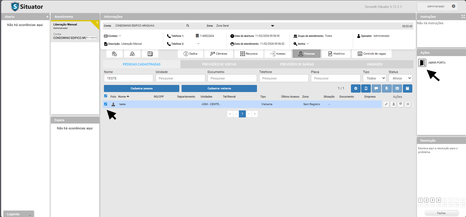 Descrever como realizar a abertura de Porta para uma Pessoa já cadastrada no Situator.