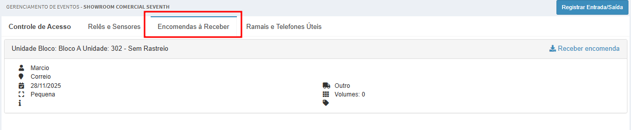 - Clique na opção Receber encomenda do morador.