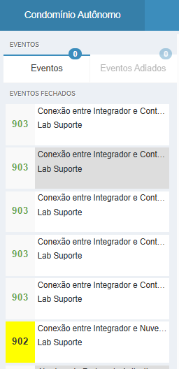 Os status 902 e 903 aparecem no Gerenciamento de Eventos