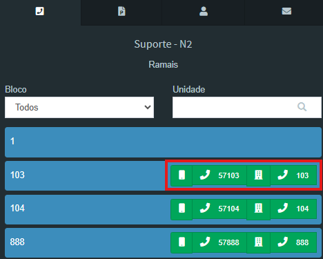 - Utilize o scroll do mouse para visualizar todos os ramais cadastrados.