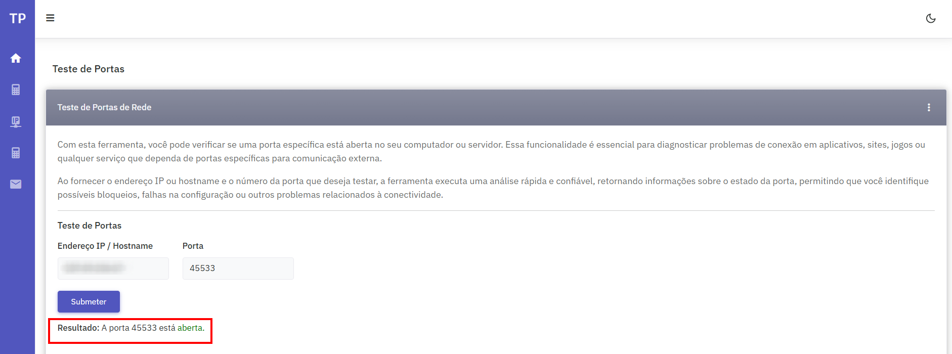 Caso a porta retorne como Fechada, revise o redirecionamento de portas (NAT) no roteador ou firewall da rede do condomínio.