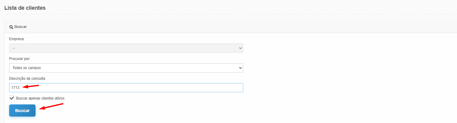No campo "Buscar" você digita o nome do Cliente (pode ser e-mail ou o código da conta).