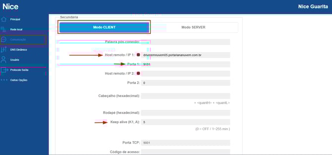 Configuração do modulo guarita (Modo cliente) para integração com o driver em nuvem
