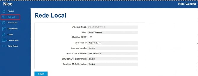 Preencha com o IP local