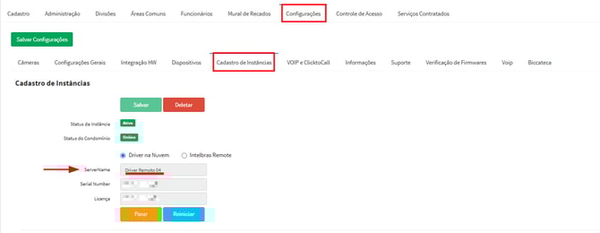 O driver pode ser verificado em Configurações -> Cadastro de instancias