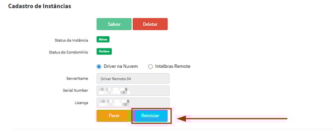 - Após reiniciar o HCS, reinicie a instância na página web do condomínio.