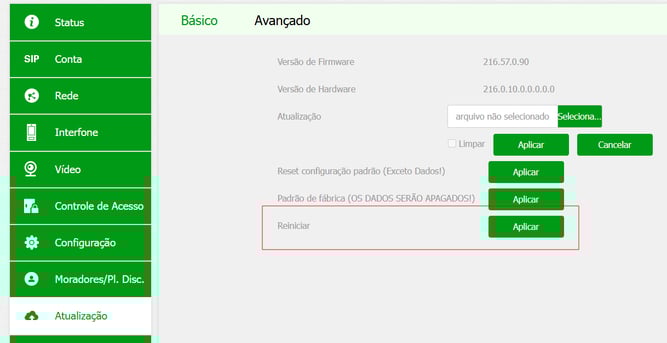 ℹ️ O reinício aplica todas as configurações realizadas.